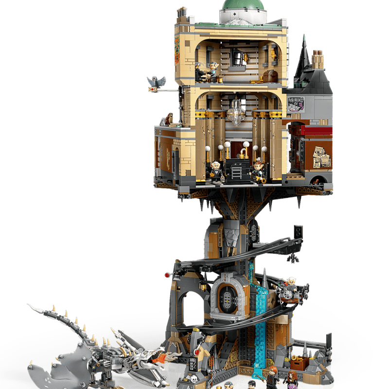 Be transported to the Wizarding World as you build this LEGO® Harry Potter™ Gringotts™ Bank – Collectors’ Edition (76417) set. Recreate the bank’s opulent foyer and mezzanine floor with a safe in the wall to store Hagrid’s secret letter. Construct a spiraling vault cart track with a mechanism that stops the cart at each of 3 underground vaults – including Bellatrix’s vault, which has a magical surprise inside! The set also includes a posable Ukrainian Ironbelly dragon figure and a buildable model of the Magical Menagerie shop.