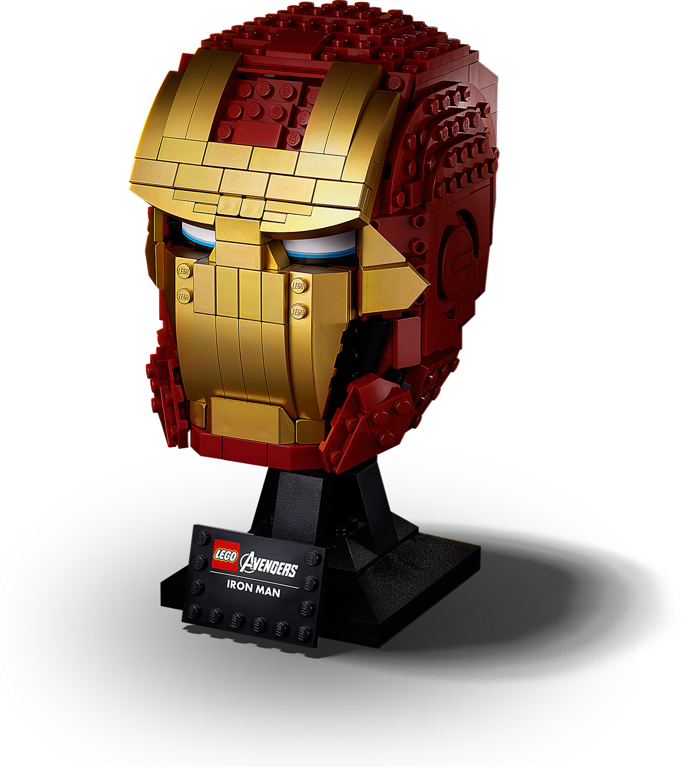The iconic design of Iron Man’s Helmet is cleverly reproduced with LEGO bricks and graphics stickers to evoke memories of classic Marvel Avengers movie scenes.