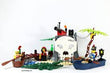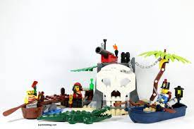 Land ahoy! The rogue pirate and the pirate queen have discovered a secret cave containing a treasure chest full of booty, but a Bluecoat Soldier has arrived in his armed rowboat! Weave through the cannon fire, draw your cutlass and capture the pesky pirates. Then tip the palm tree to open the huge skull gate, recover the stolen treasure and sail the scalawags to the nearest dungeon! But look out for the hungry crocodile lurking beneath the waves! Join the fun and adventure with the LEGO® PiratesTreasure Island set. Combine with the 70409 Shipwreck Defense for an even bigger pirate adventure! Includes 3 minifigures with assorted weapons and accessories: a pirate queen, pirate and a Bluecoat Soldier.