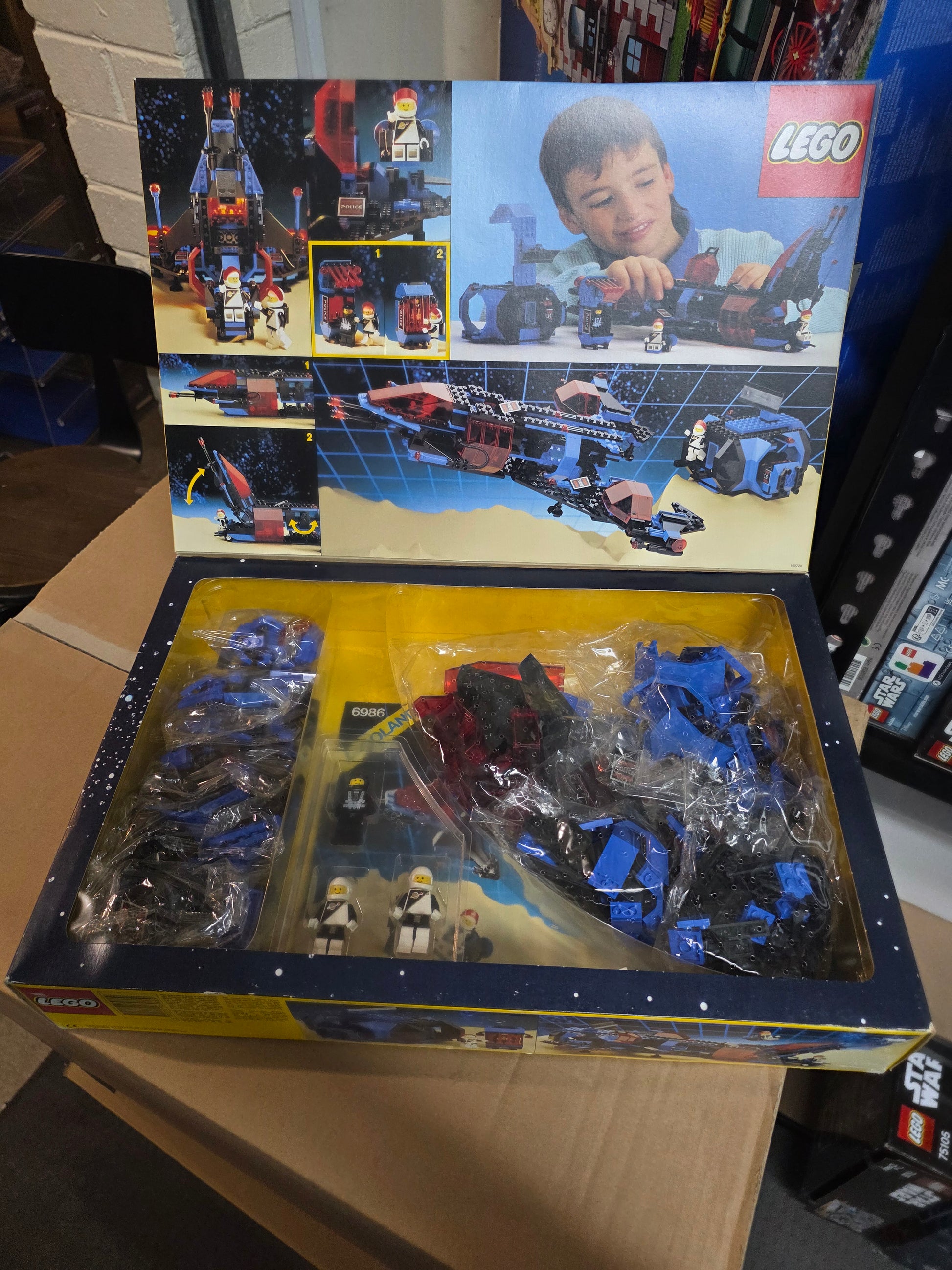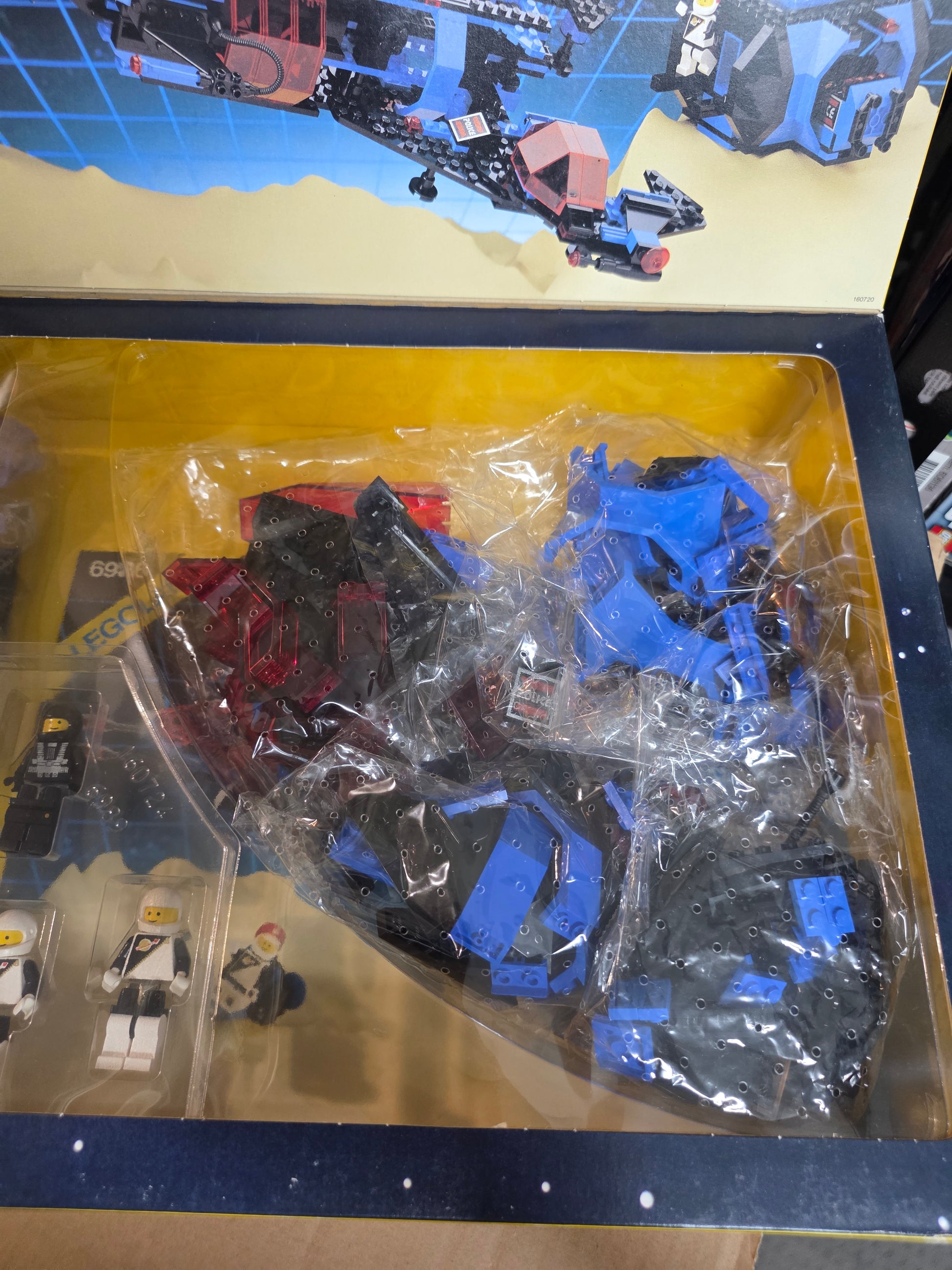 LEGO 6986 Mission Commander (1992) is the flagship set of the Space Police II theme. This large spacecraft features a distinctive black-and-neon-green colour scheme with red highlights, capturing the classic ’90s space aesthetic. The ship includes a central command module, detachable prison pods for capturing Blacktron criminals, and multiple hinged sections for play access. Its sleek wings, hidden storage compartments, and modular design make it one of the most versatile sets in the theme. Three minifigures are included—two Space Police officers and one Blacktron villain—enhancing the set’s storytelling potential. Today, it remains a standout favourite among vintage LEGO space fans.