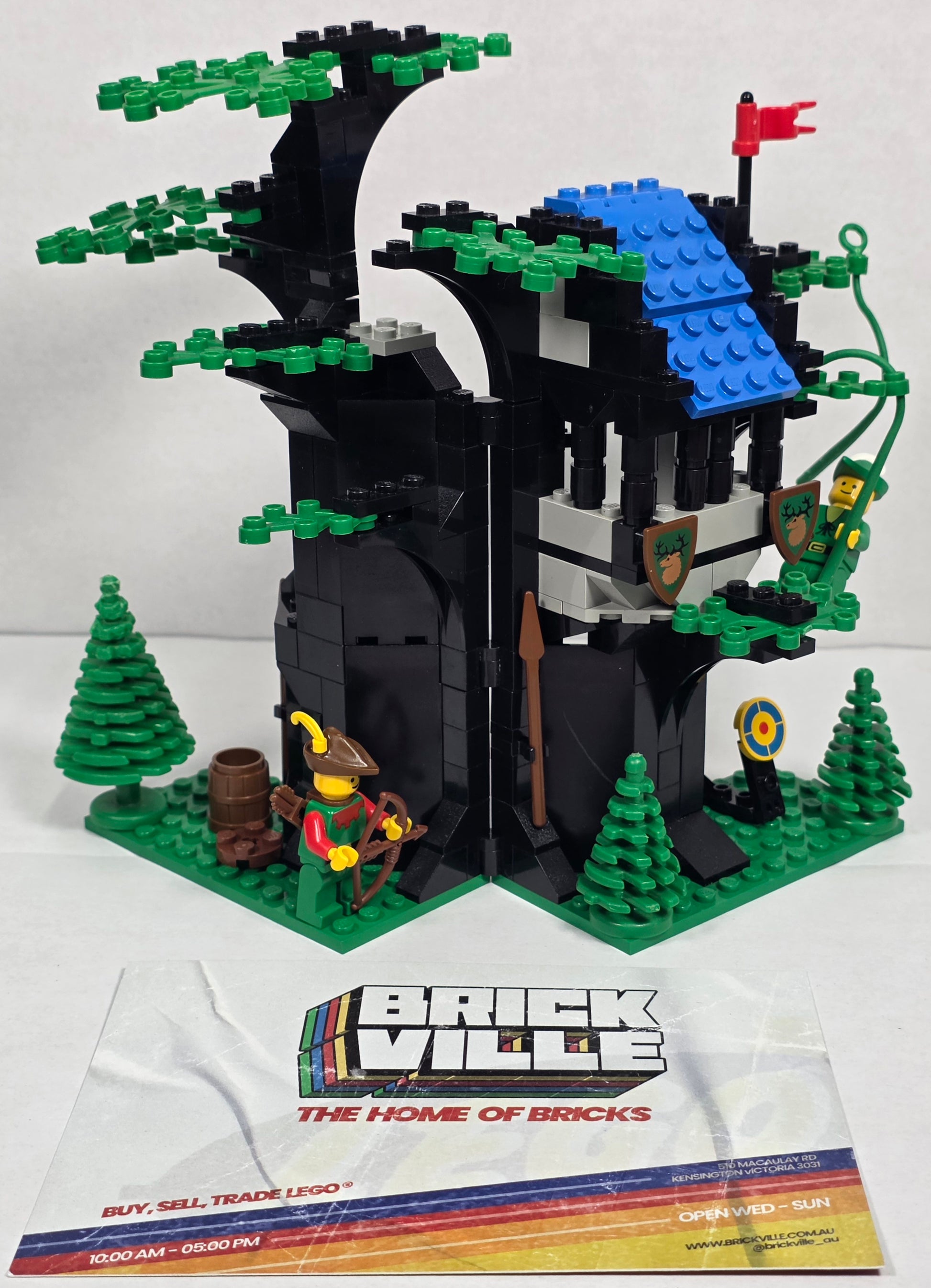 LEGO 6054 Forestmen's Hideout is a 201 piece Castle set with 2 minifigs released in 1988. It includes a hollow tree hideout and two Forestmen minifigures with on of the minifigures being the Forestmen leader. It opens to reveal a hidden room. The set was also called "Robin Hood's Tree Hideaway"