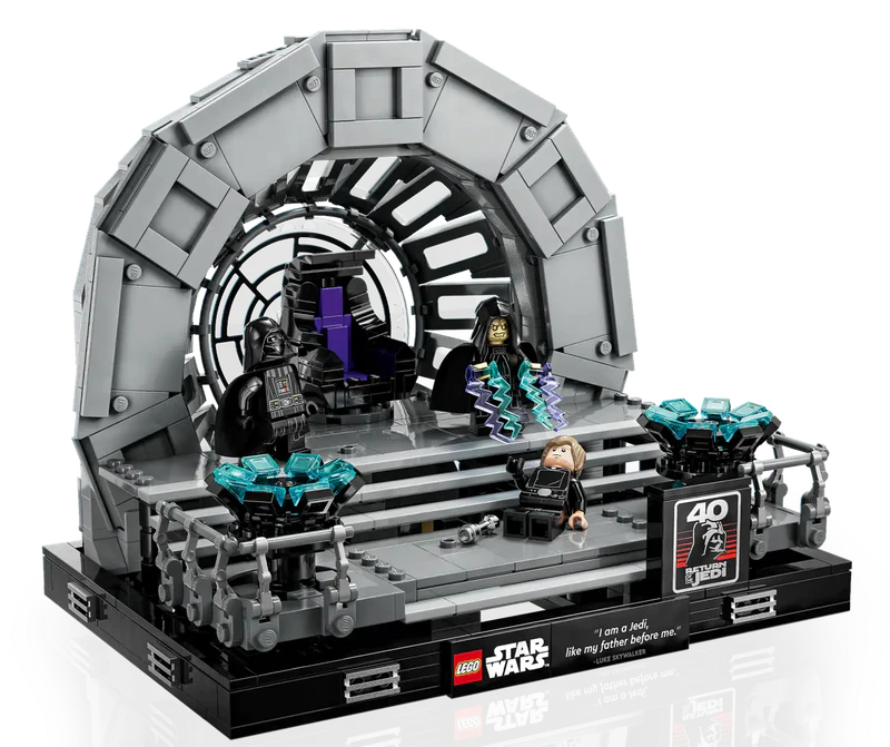 Relive the dramatic climax of the classic Star Wars™ trilogy with this Emperor’s Throne Room Diorama (75352). It is packed with authentic details, including a Death Star window element designed especially for this set and Emperor Palpatine’s rotating throne. Capture the action with Darth Vader and Luke Skywalker LEGO® minifigures, each with lightsabers, and Emperor Palpatine with 2 Sith lightning bolt elements. This build-and-display model is completed with a plaque featuring a famous Luke line(“I am a Jedi, like my father before me.”) and a plaque with the Star Wars: Return of the Jedi 40th anniversary logo.Galaxy of joyThis is part of a collection of LEGO Star Wars Sets for Adults, including other buildable dioramas depicting iconic scenes, and is a great gift for yourself and other adult Star Wars fans.